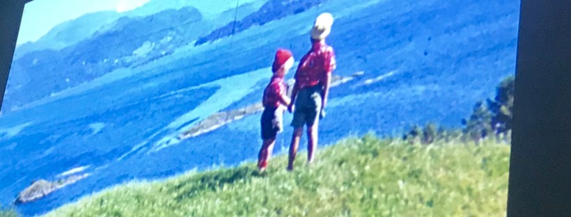 Haakon (no død) og Liv Sandberg saman med sonen Øyvind og hans son August (arkivbilete, foto: Silje Alvsaker). Dette biletet heng no i Sandbergsalen, i lag med mange andre fine bilete frå filmane til Sandberg-familien.